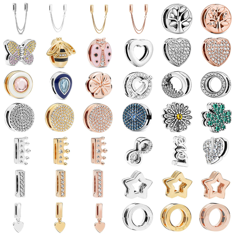 S925 Серебряные цветные отражения зажимы бусины шармы круглая Хрустальная корона сердце любовь бусины подходят для оригинального браслета Pandora для женщин