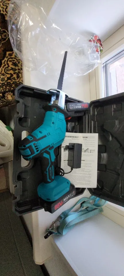 Доставлено за 2 дня в Брянск! Быстрее еще не было. Не знаю в чем причина но при заказе заметил что на Али экспрессе сей час очень мало стало бесщеточного инструмента. Пилу попросил заказать друг. У меня своего добра хватает но стараюсь брать бесщеточный. Он более мощный но у него есть одно слабое место - электроника. Если полетит проще заказать новый. Второй момент у меня есть щеточные Бош и Метабо на 10.8 вольт обоим по 10 лет- работают надежно. Только в Метабо в одном аккумуляторе заменил банки на более мощные были 1.5 Ач поставил 3.0 Ач- хреначет- зверь. Так вот проверил эту пилу- работает ход полотна маленький но не критично.В руке лежит удобно. Даже если движок полетит таких на Алике очень много и стоят копейки. К покупке советую. Паспорт в посылке левый. Красная моя пила.