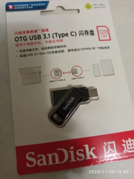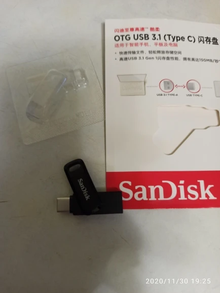 Симпатичная очень маленькая флешка 128г, с мизинец) С телефоном работает, официальное приложение SanDisk считал с упаковки, сделал резервные копии с тел на флешку) За час использования слегка нагрелась. Я доволен и однозначно рекомендуется к покупке! Шнурочек в подарок, мило)
