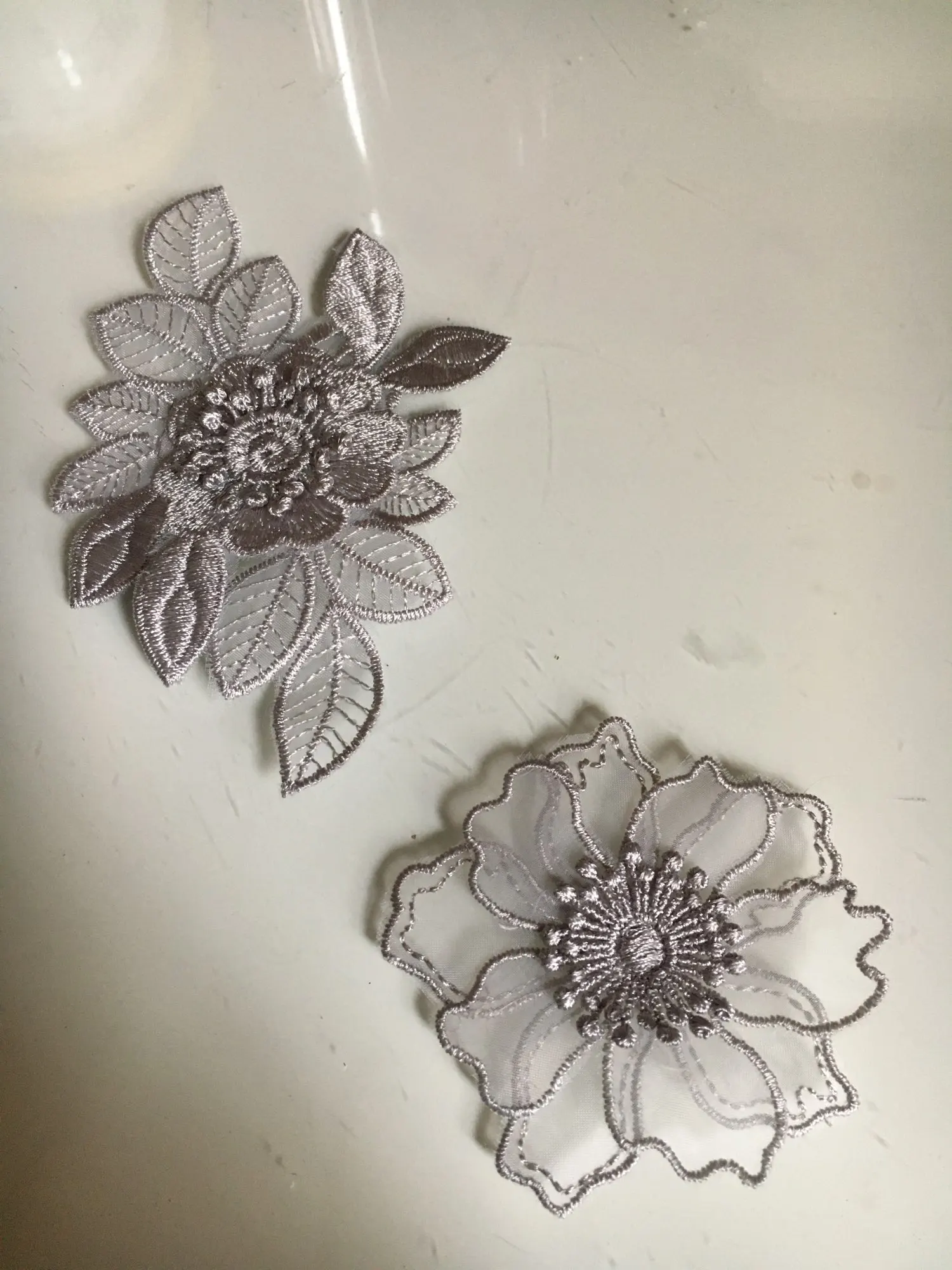 Серая кружевная органза, цветок, лист, Бабочка, вышитые термоклейкие нашивки для детской одежды, полосатый термоклейкий стикер