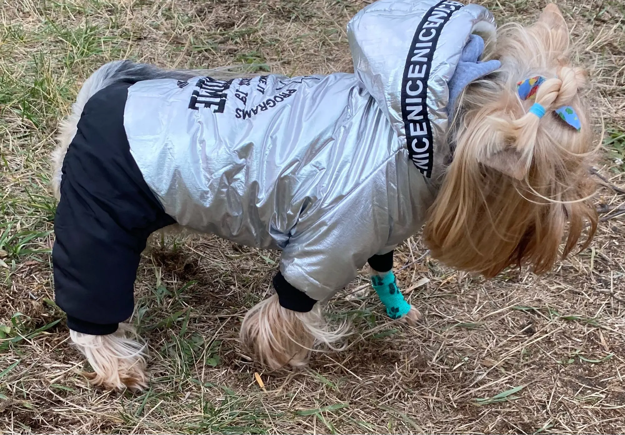 Комбинезон отличный!!! Продавец супер, пришёл до Москвы за 8 дней!!! Большое спасибо!!! XXXL на крупного той терьера подошёл отлично.