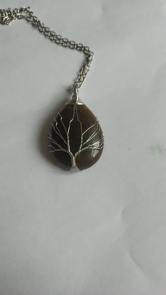 Natural Gem Stone Wire Wrap Tree of Life Necklaces Pendants