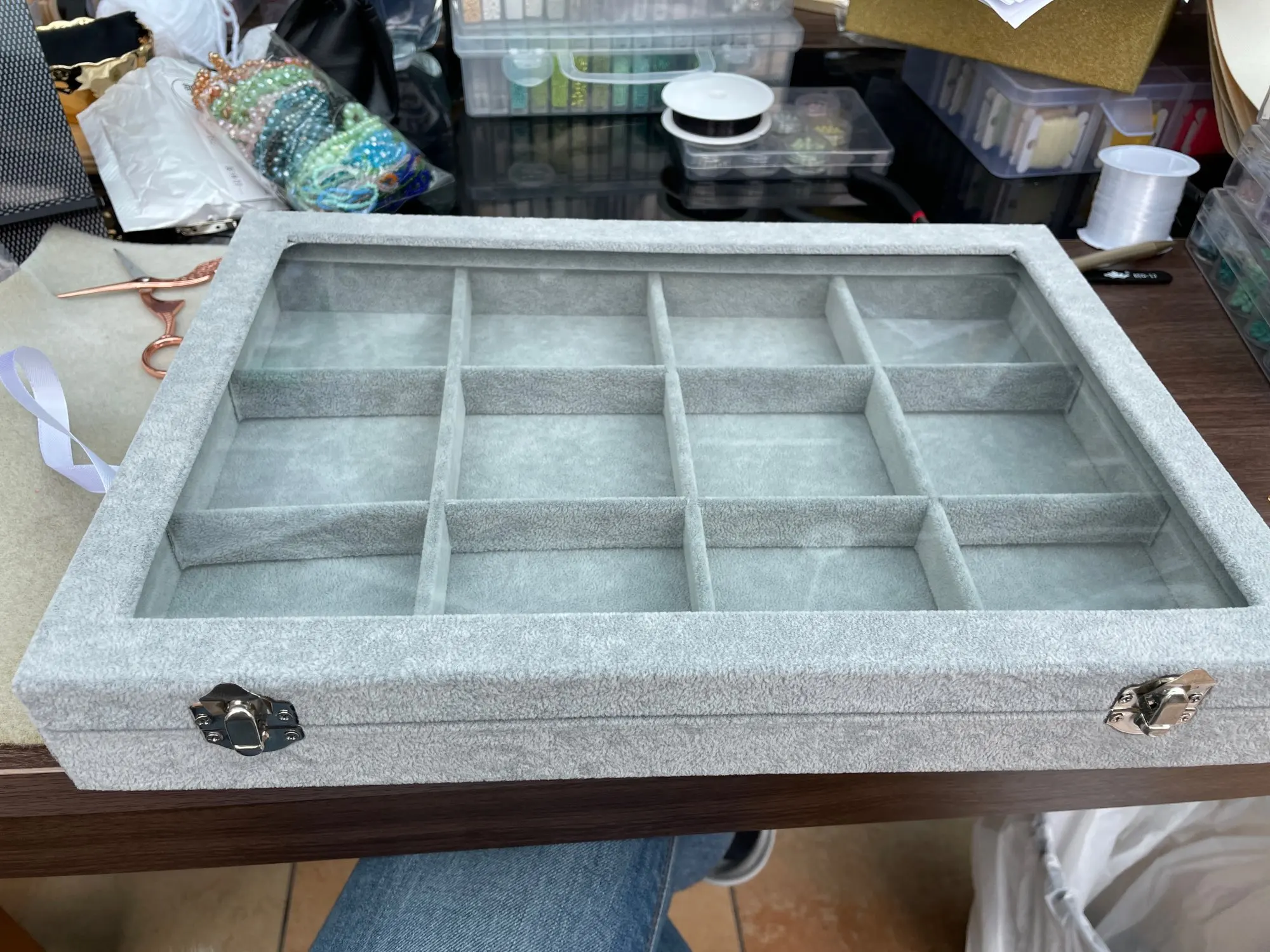 Серые ювелирные изделия лоток браслет витрина Дисплей держатель для хранения ожерелье Штабелируемый Органайзер бархат прозрачной крышкой с замком и ключом