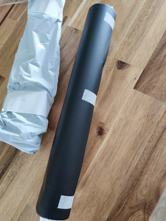 Упаковано очень хорошо, но пленка была мятая и в заломах. Цвет чёрный но красивые отблески мелкой крошки.