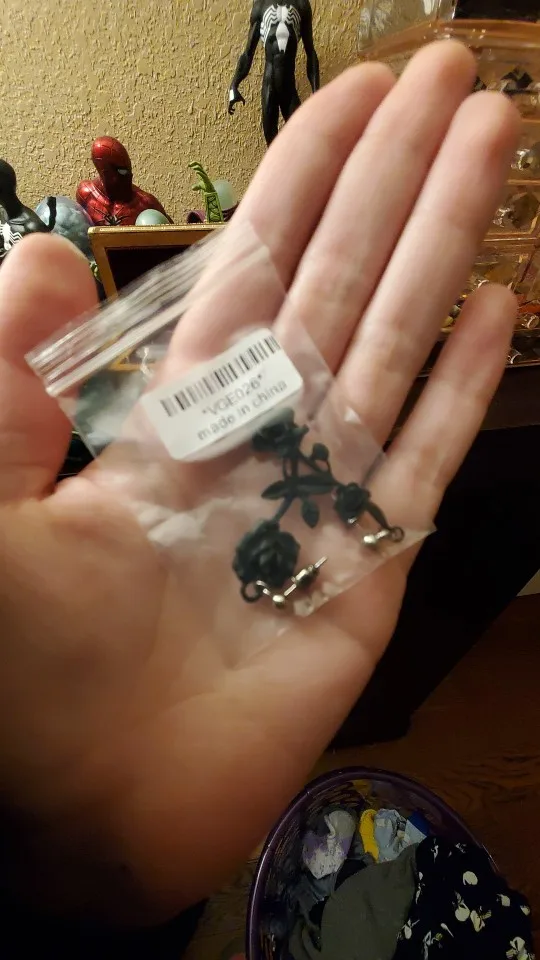 Серьги-гвоздики Асимметричные в готическом стиле, ювелирное украшение в виде темной готической черной бриарной розы, неглазурованная черная Клубная рок, в стиле хип-хоп, ювелирные украшения