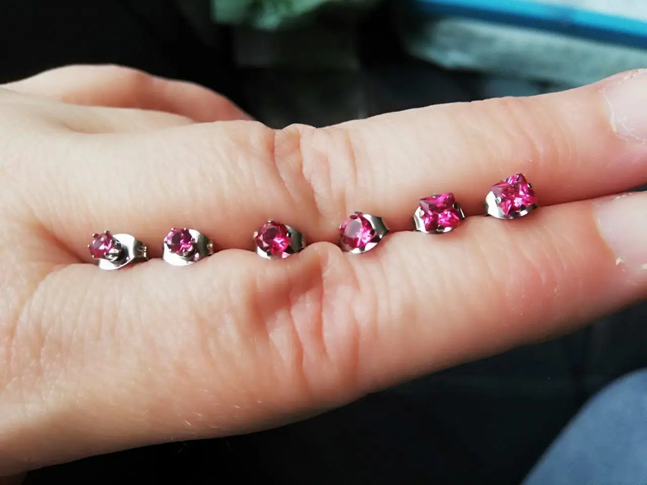 Они такие маленькие, но такие классные. Камушек очень красивый. Правда металл не очень хороший, чувствую, уши будут болеть. Пока примеряла уже не комфортно стало. Но, посмотрим, как в носке будут.