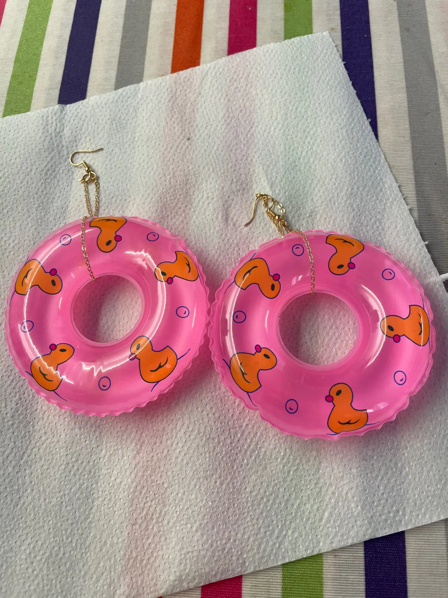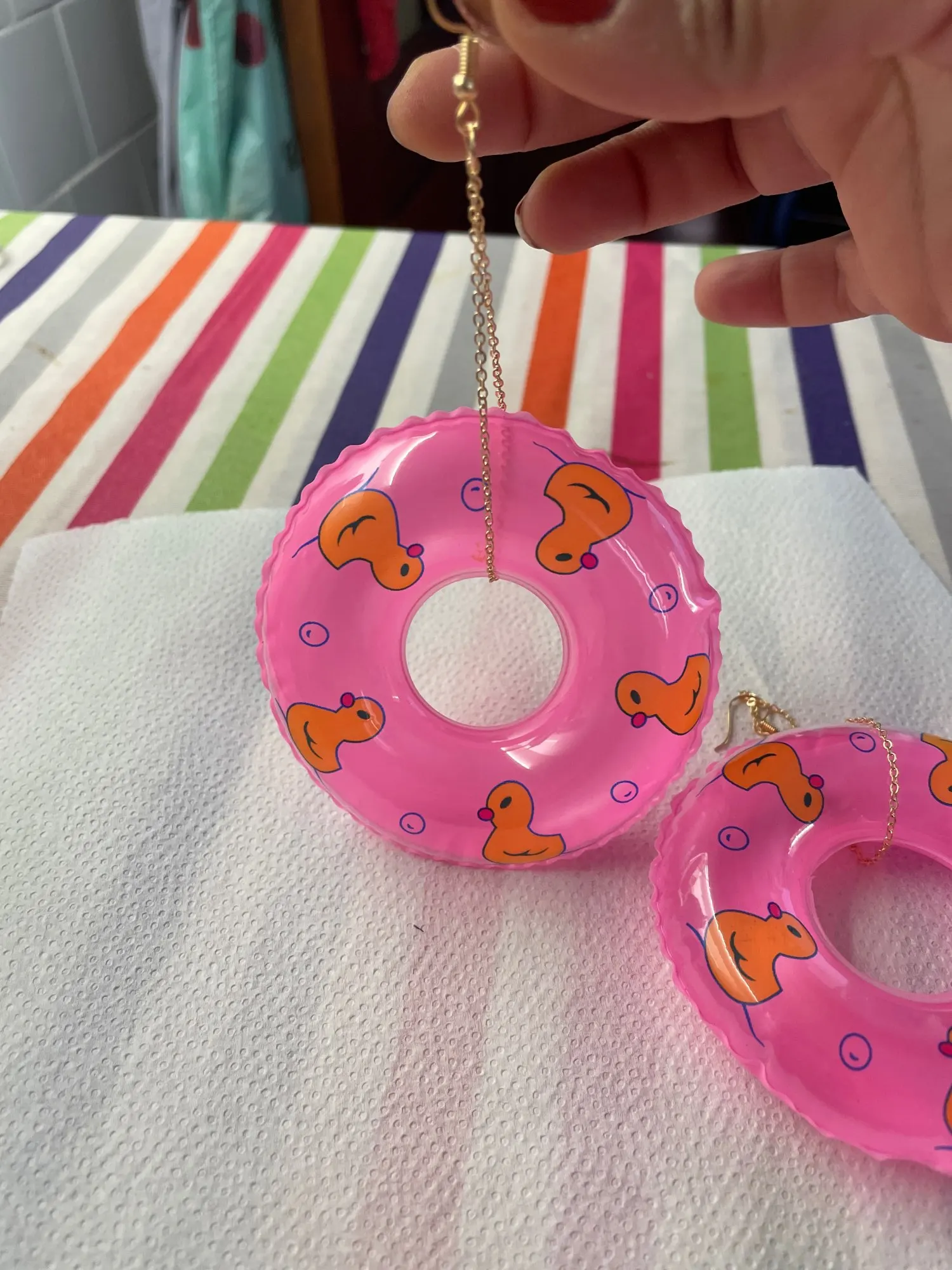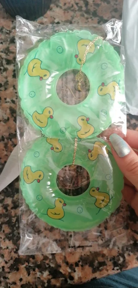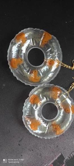 К сожалению, одна сережка пришла порванной и сдутой, но другую я показать смогу.