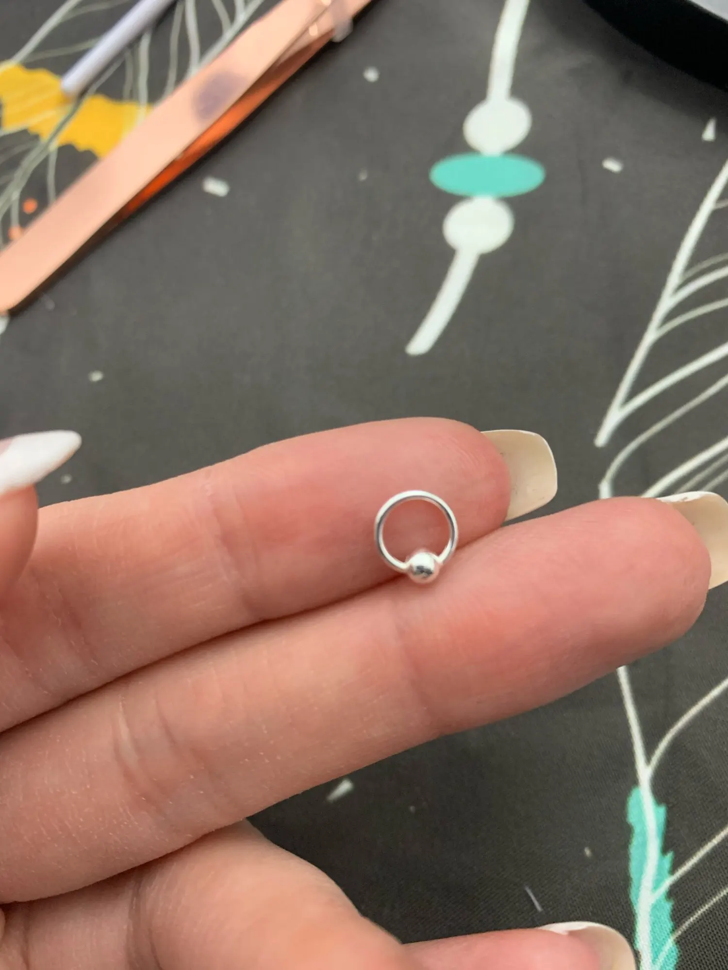 Сережка пришла, но оказалась очень маленькой для крыла носа, очень жаль. Но все-равно спасибо!