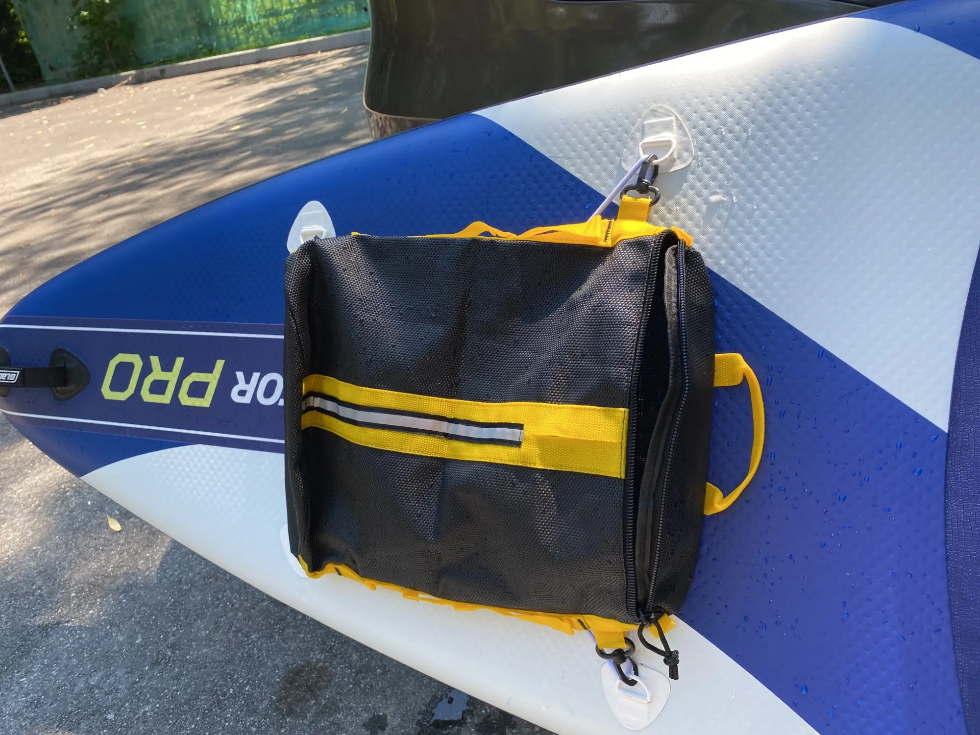 Очень симпатичная сумка из "дырявой" ткани. Сохнуть будет быстро. Молнии толстые. На лодку пока не приспосабливал. Сумка понравилась