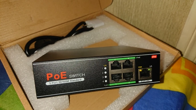 Потестировал двое суток, работает нормально, не греется, не воняет. Работает сейчас на две камеры. Длина линии примерно по 90 метров дешевой уёбищной омедненной алюминиевой ютипишки. Переключатель 100/250м оставил в положении 100м.