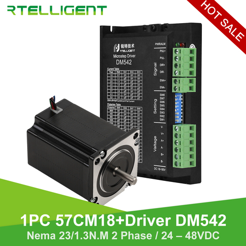 Шаговый двигатель Rtelligent Nema 23, шаговый двигатель 57CM18 и Nema 23, драйвер DM542, драйвер двигателя 1.3n. M 24-48V DC, комплект шаговых двигателей