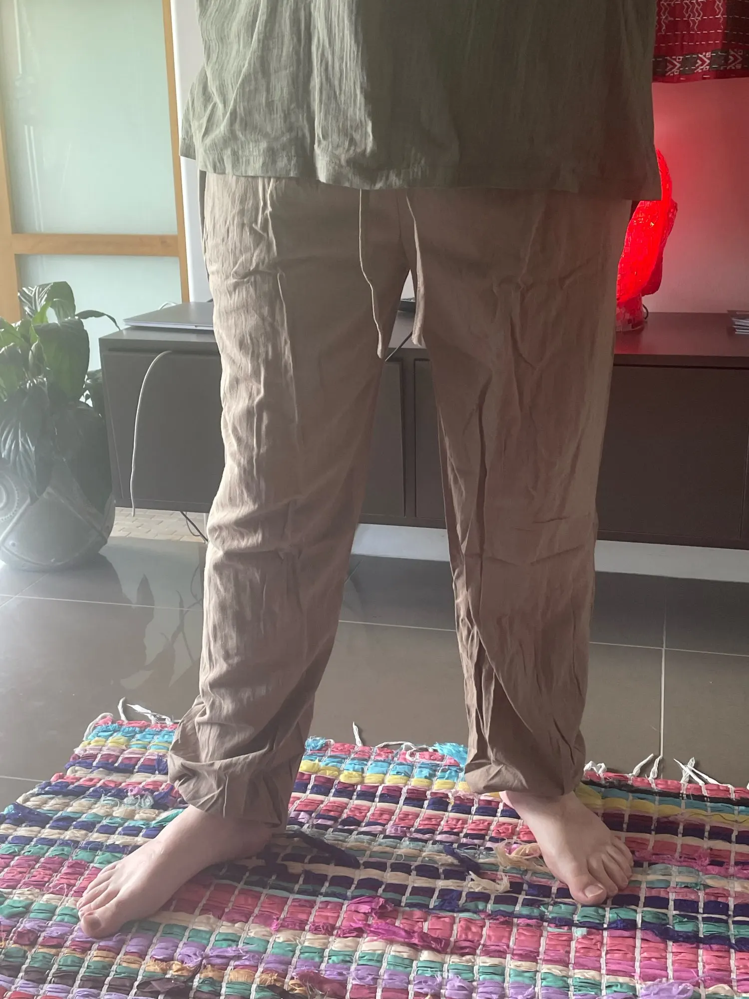 Брюки тонкие, мягкие, приятные на ощупь. Заказываю уже вторые. Подойдут для лета, тренировок и как домашняя одежда. Один минус, вместо зелёного пришел цвет песок. Открыл спор и продавец вернул часть средств.