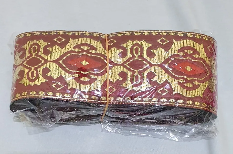 Ширина 5 см, 10 ярдов/партия, искусственная лента, красный фон, золотой геометрический узор для одежды, аксессуар