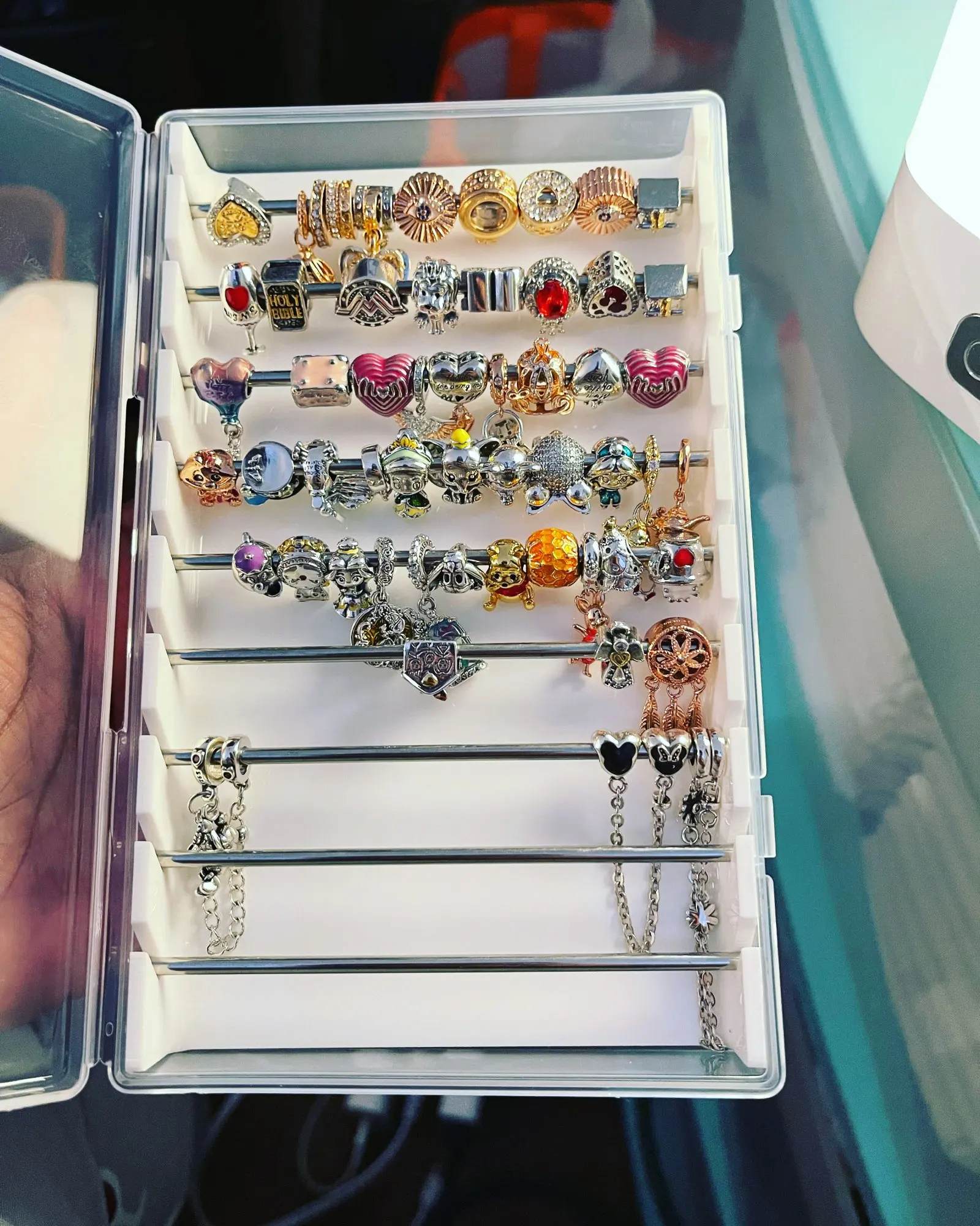 доставка относительно быстрая,около трех недель. Дошло всё целое ,ничего не поломалось. Было упаковано очень хорошо.Коробочки для хранения шармов очень компактные и хорошего качества. Положили даже силиконовые колечки для предотвращения трения шармов друг об друга. Есть маленький недостаток ,но это не очень важно. При переворачивании коробочки ,металлические перегородки на которых весят шармики вылетают из па'зов. Но это можно с лёгкостью самим исправить. За эту цену упаковки для хранения шармов просто идеальны. Рекомендую этот магазин.