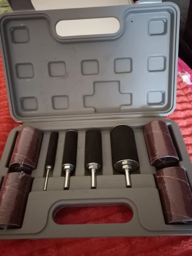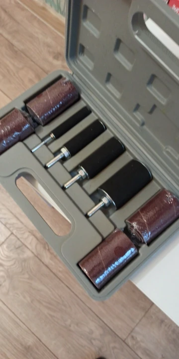 Барабаны чуть меньшего диаметра. После того как надели наждачку, надо подтянуть гайку, резиновая втулка сожмется и разопрëт наждачку изнутри. Ничего болтаться не будет.