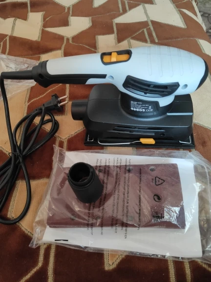 Хорошая шлифовалка по отличной скидке да ещё и с комплектом наждачек. Удобная, с прорезиненной рукояткой, подошва ровная. Со своими задачами справляется. Поработаю дольше, допишу...