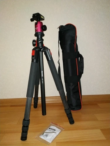 Штатив понравился - крепкий, надежный. Головка поворачивается плавно без рывков. Съёмная платформа металлическая с прорезиненными подушечками. Есть чехол - ткань прочная, с уплотнителем и внутренним карманом на молнии. Мой canon mark 3 тяжеловат для съёмки в горизонтальном положении, но можно использовать песок для противовеса. Штатив своих денег стоит. Продавец отвечает быстро.