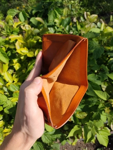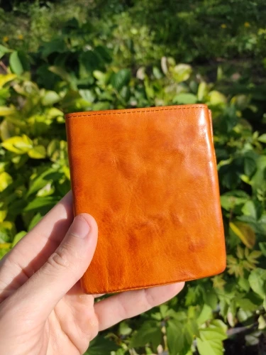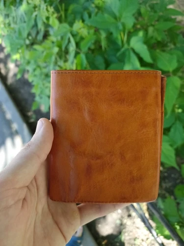 Этот кошелёк не терпит влаги, будте аккуратны, буквально 1 капля но на середину кошелька попала, и после высыхания осталось сильное пятно, остаётся только перекрашивать или покупать новый. И ещё момент - кошелёк быстро теряет свой оранжевый блеск, просто потому что постоянно им пользуешься. кожа замызгивается, имейте это ввиду.
