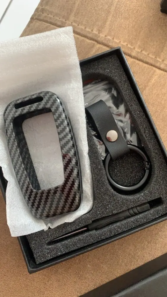 Чехол металлический, тяжеловат, ключ в нем болтается, пришлось изнутри обклеить для плотности. После доработки сидит идеально.