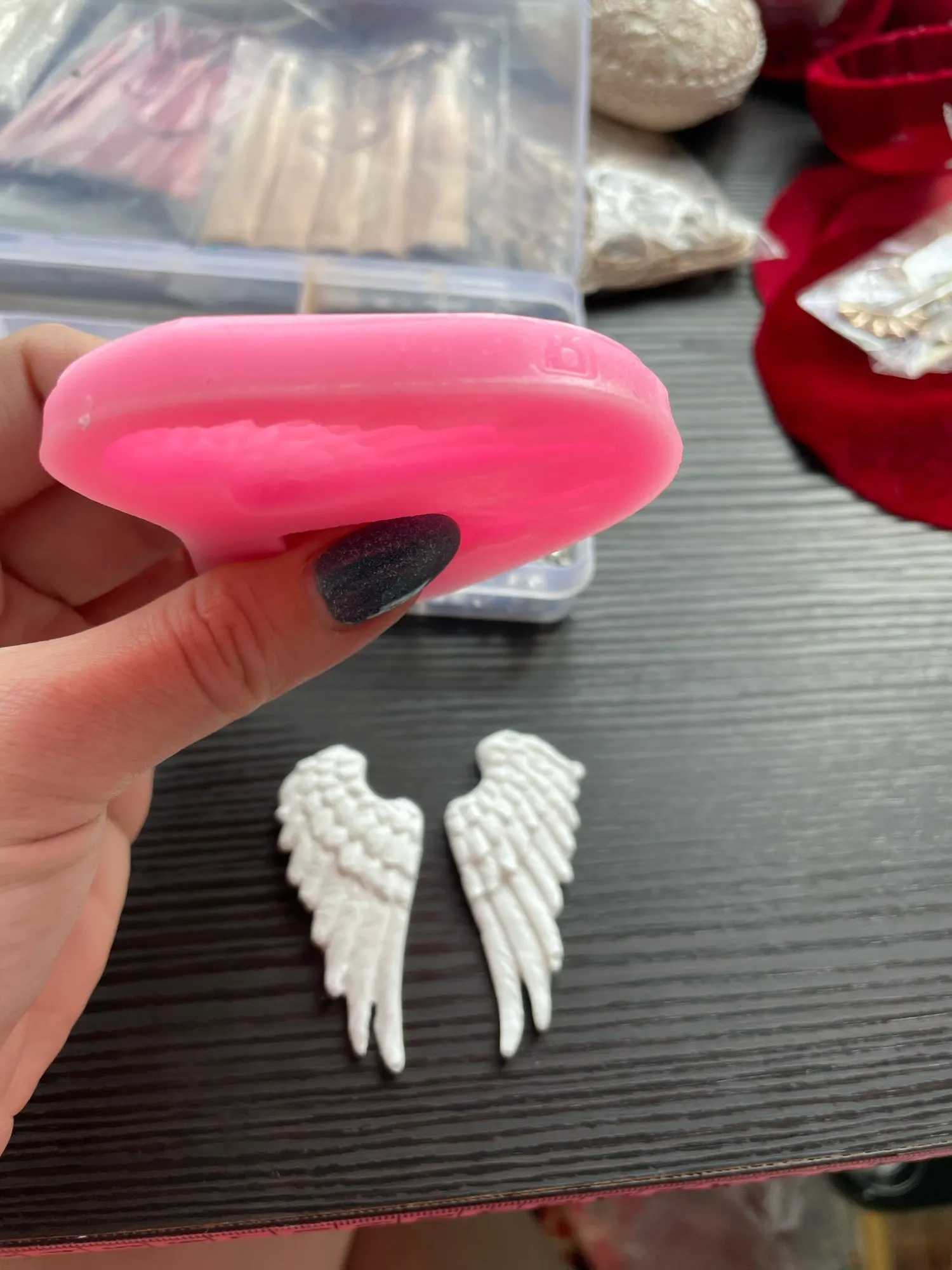 Силикон не воняет, мягкий, крылья очень красивые - выходят из формы очень хорошо, размер отличный. Продавец товар отправил сразу, товар пришел быстро. Благодарим за качество и оперативность! Рекомендуем!
