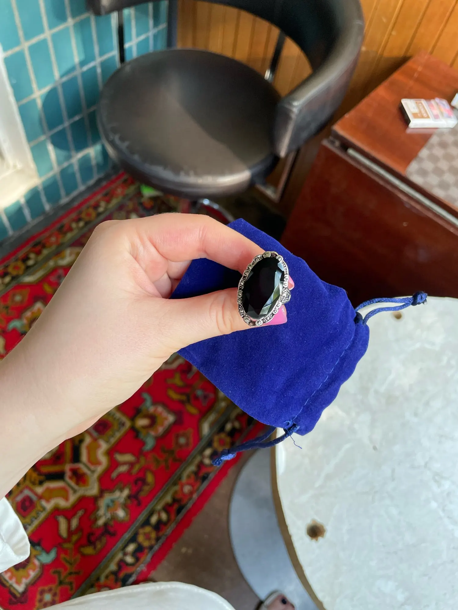 Великолепное кольцо! Тяжеленькое,во всю длину фаланги, стекло.