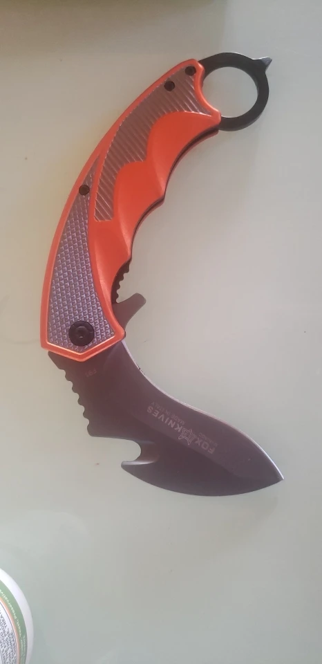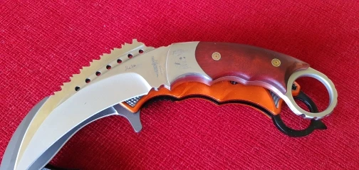 нож реально большой, в руке лежит удобно, хват керамбитом неудобен, кольцо маловато