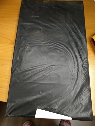 До Днепропетровска доставка за 3 дня.Привез курьер к дверям.На вид качественный и добротный, достаточно тяжёлый.Цвет черный в беленькую точечку.После установки дополню отзыв.На изгибе присутствует некая незначительная вмятина,не критично,на фото видно.