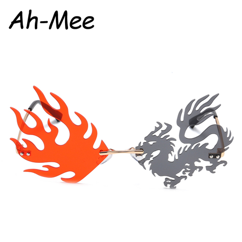 Солнцезащитные очки без оправы в стиле панк женские модные уникальные очки с огненным драконом Мужские красные черные Рождественские очки ...