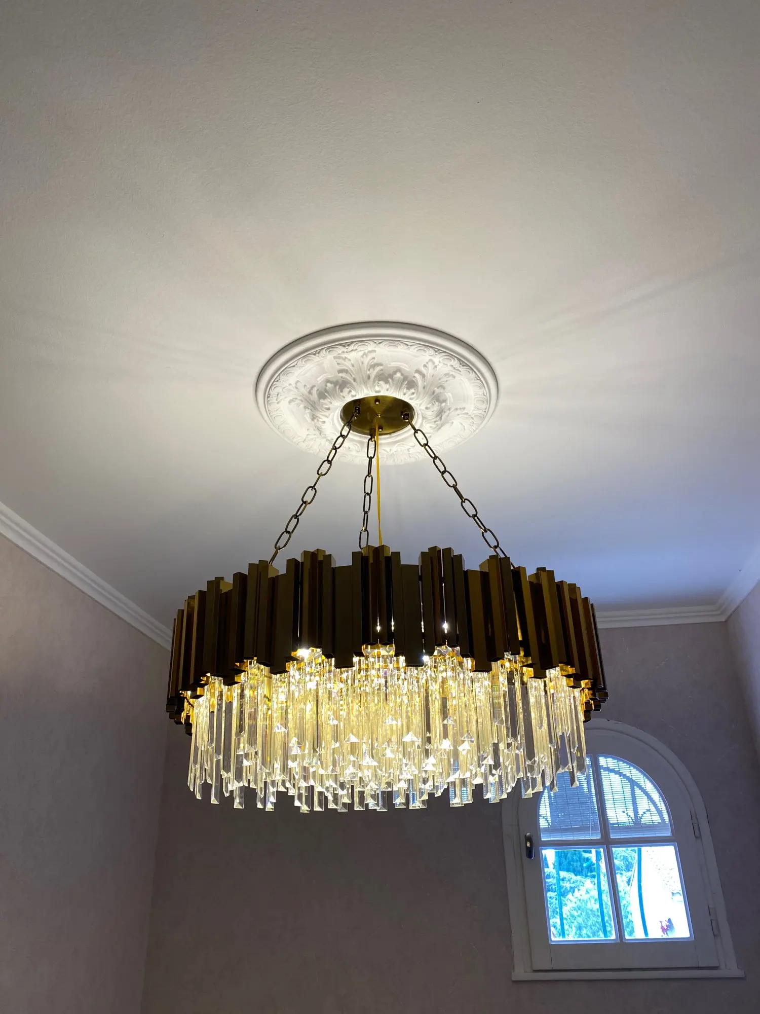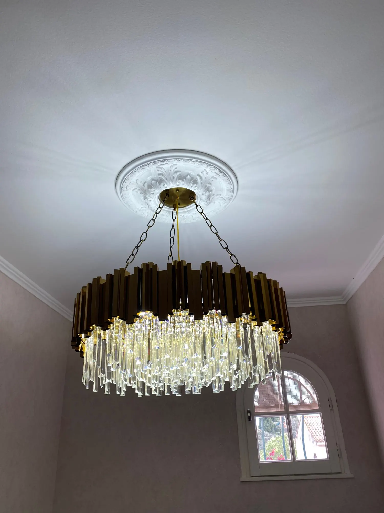 1.На фото продавца товар на нескольких цепях. И ранее в таком-же диаметре приходило по отзывам людям на нескольких цепях. По факту пришло на одной цепи. 2. Товар пришёл без крепежей вообще -их не положили. Связались с продавцом выслал крепежи отдельно. Люстра лежала и ждала свои крепежи без возможности ею пользоваться. Но с момента заказа товара до пользования прошло более 2 месяцев-очень долго. 3. Когда пришёл крепёж начали вешать и узнали что 7 хрусталинок с трещинами, но ждать ещё один месяц не готовы-так что повесили так