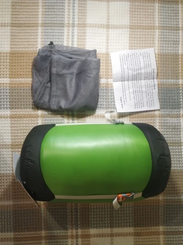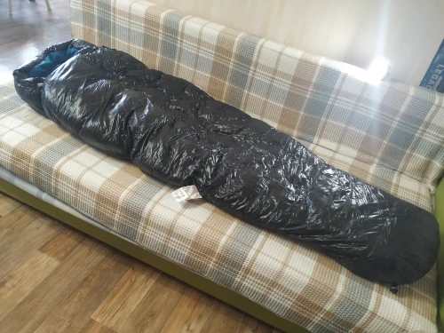 очень качественный спальник, легкий и очень хорошо распушаемый. ничем не пахнет.