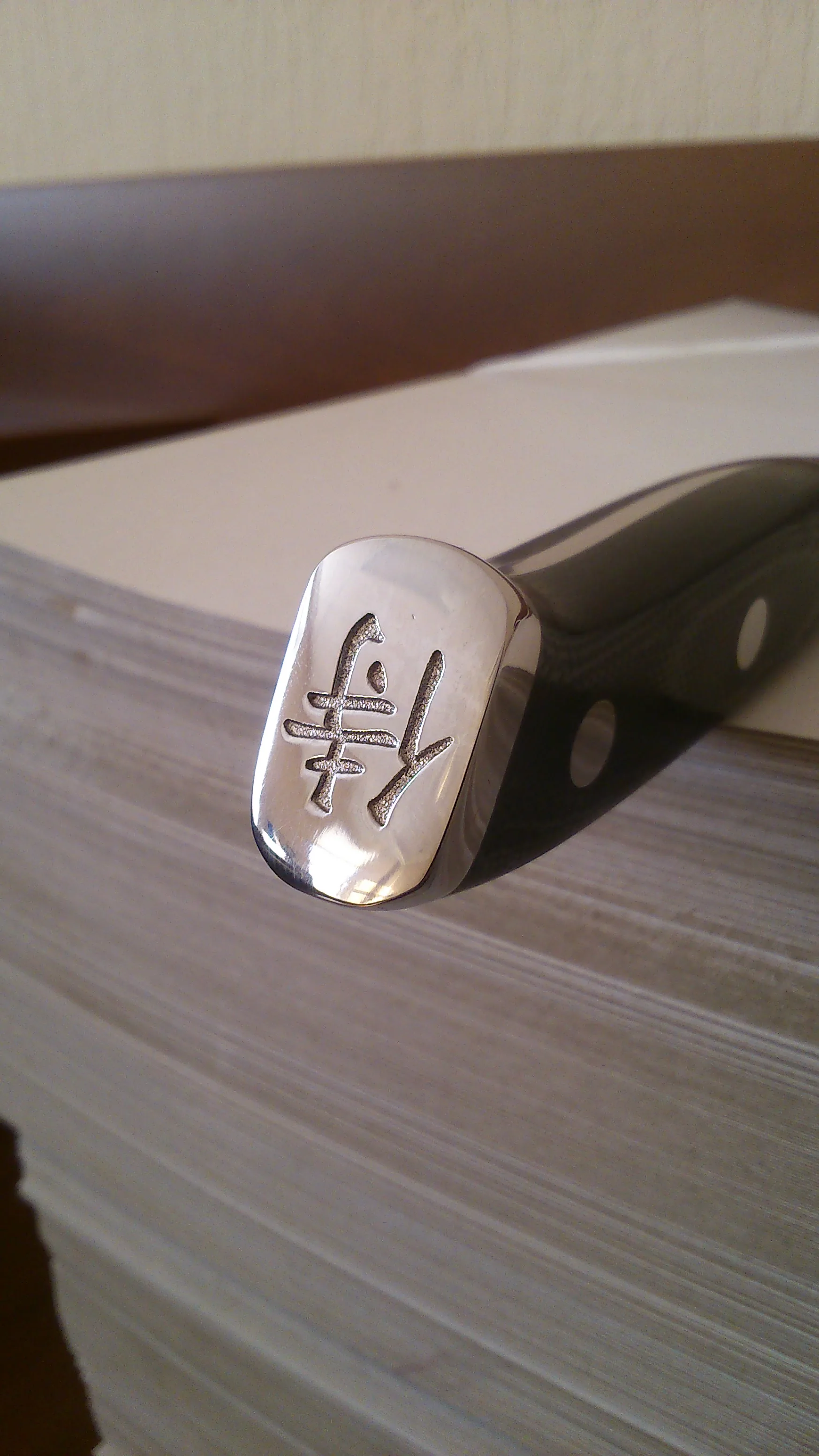 Отличный нож! Беру уже второй, ранее заказывал немного покороче (6 дюймов). За почти год использования никаких нареканий, ни разу не затачивал, только правил на икеевском керамическом мусате. У этого экземпляра никаких проблем с геометрией клинка, подводы ровные и симметричные, заточка на 4-, но это легко поправимо.