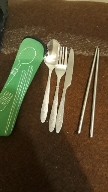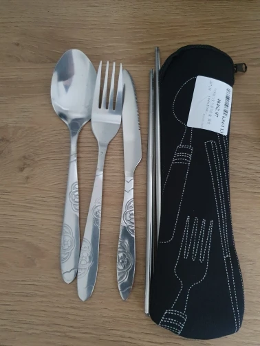 Столовые приборы из нержавеющей стали, набор столовых приборов с вилкой, ложкой, палочками и сумкой в кармане, для отдыха на открытом воздух...