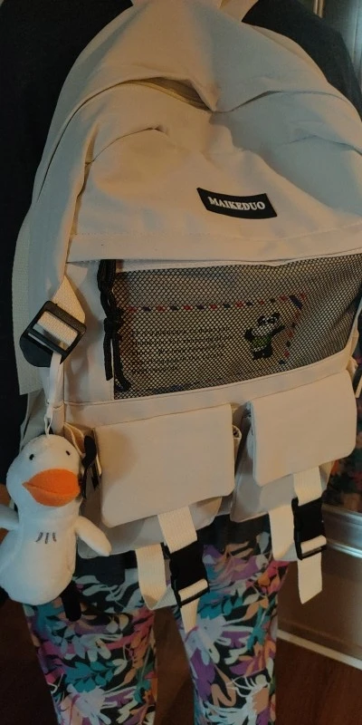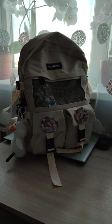 Очень красивый и стильный рюкзак. Много отделений. Все швы выполнены качественно и аккуратно. Уточка - милашка.