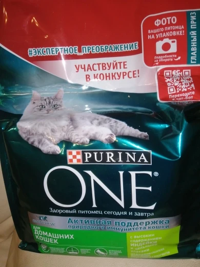 Сухой корм Purina ONE для домашних кошек с индейкой и цельными злаками, Пакет, 3 кг