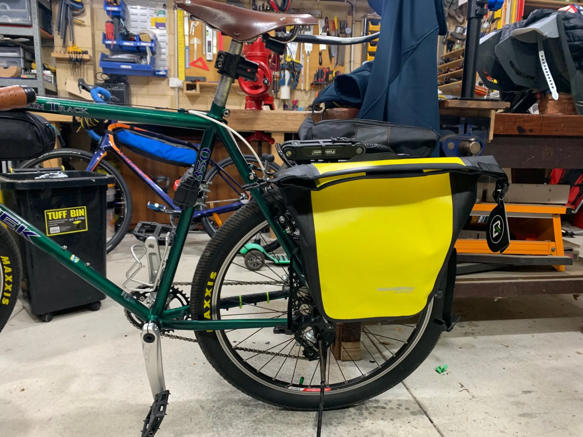 Крепление к багажнику не совсем такое как на фото. Крючки на моих сумках можно регулировать по ширине, это даже лучше.