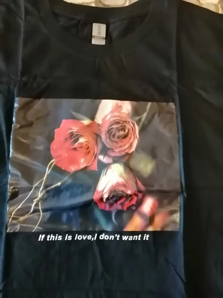 Sunfiz YF, если это любовь, я не хочу его, топ с буквенным принтом, в стиле Харадзюку, с рисунком розы, свободная черная большая футболка