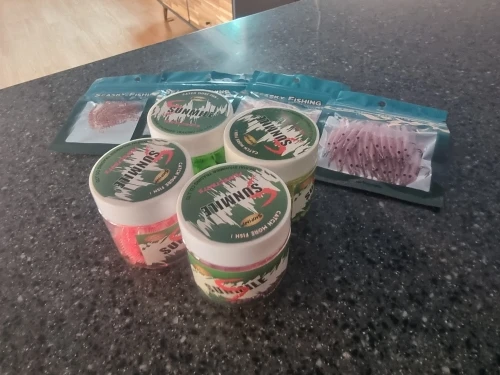 на вид резина понравилась. запах аттрактанта достаточно сильный. из заказанных один цвет перепутали. прислали другой.