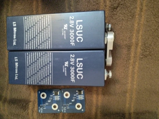Заказал 12.12.20, получил 3 февраля 21. Внешне видно б/у. Сколько ему лет, можно гадать. Защитная плата новая, сделана нормально. Погонял его на разряд-заряд, вычислил ёмкость. По моим расчетам получилось 3115 фарад. Близко к указанному. Защита сработала при 2,45 вольтах. Зарядил конденсатор полностью и через повышающий DC-DC (Uout=3,3V) подключил светодиод. Диод вначале кушал 120mA, вся схема 600 mA (не экономно). Преобразователь и светодиод сильно грелись. Светил 6 часов. В конце вся схема кушала 40mA, напряжение на кондере 0,37V (преобразователь удивил, по техданным должен был генерировать от 0,9V). При попытке в конце теста замерить напругу на диоде, срыв генерации. В итоге, ещё как вариант использования кондёра- резервное освещение. Ещё поиграюсь со сваркой.