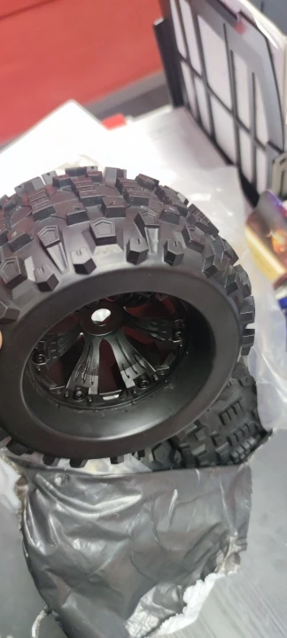 Товар пришел очень быстро, соответствует полность, огроменные колеса! Кайф! Качество достойное, на фото. Пакет герметичный, резина не пересушена, проклейка слабовата но хорошая! Покупал для Kraton 6S доп отзыв будет когда поставлю и сделаю тест