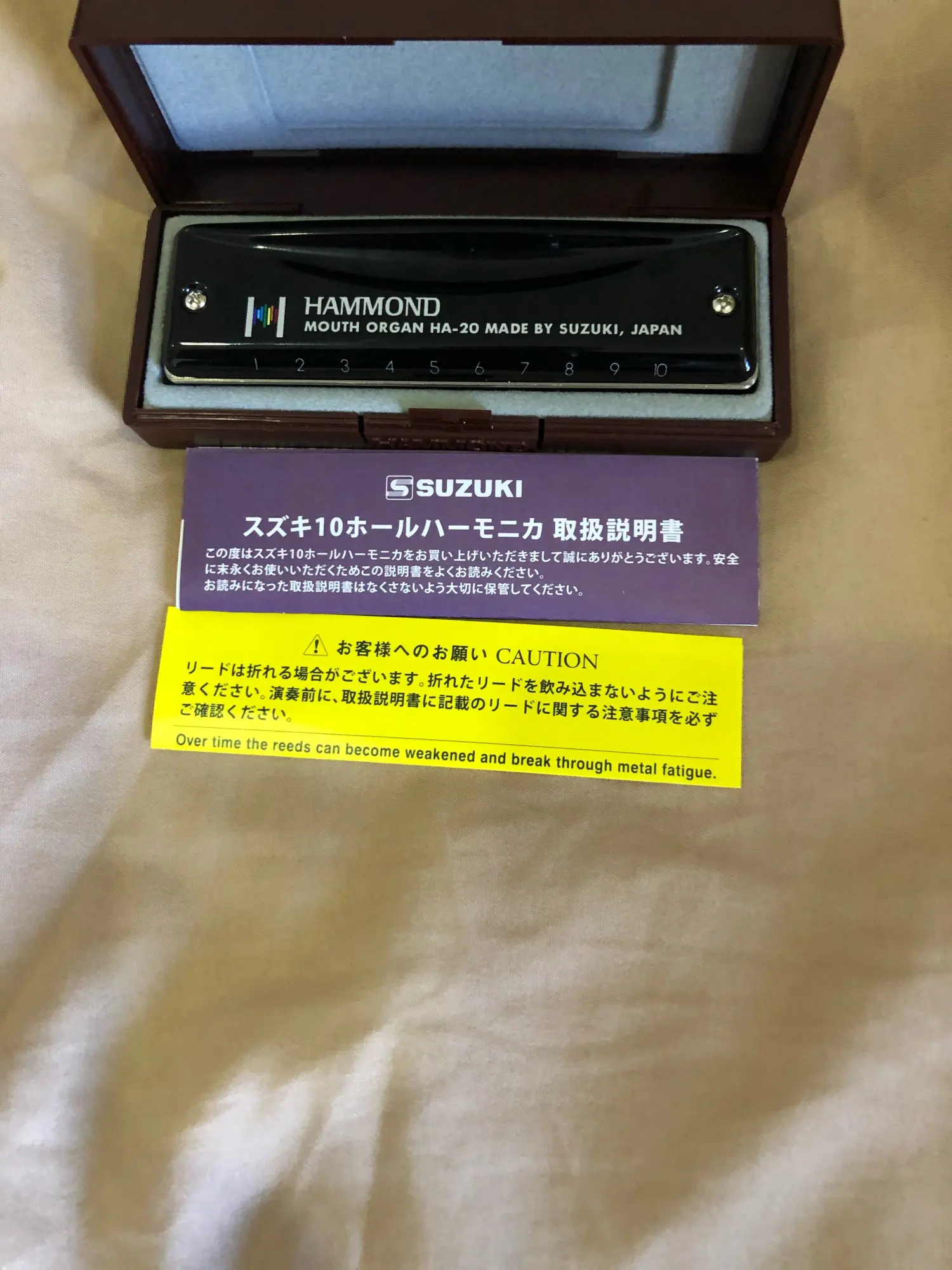 Посылка дошла быстро. Гармошка замечательная. Играть легче, чем на Hohner и Lee Oskar. В подарок положили протирочную тряпочку. Товар и продавца рекомендую.