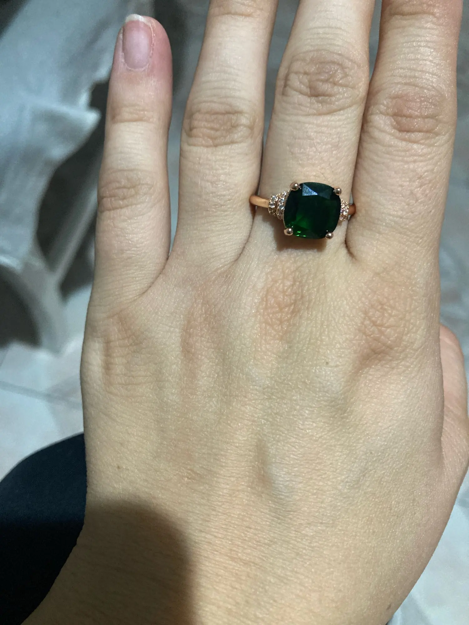 Пришло быстро и колечко хорошее ну почему-то тоже оказалось чуть меньше буду носить на другой палец