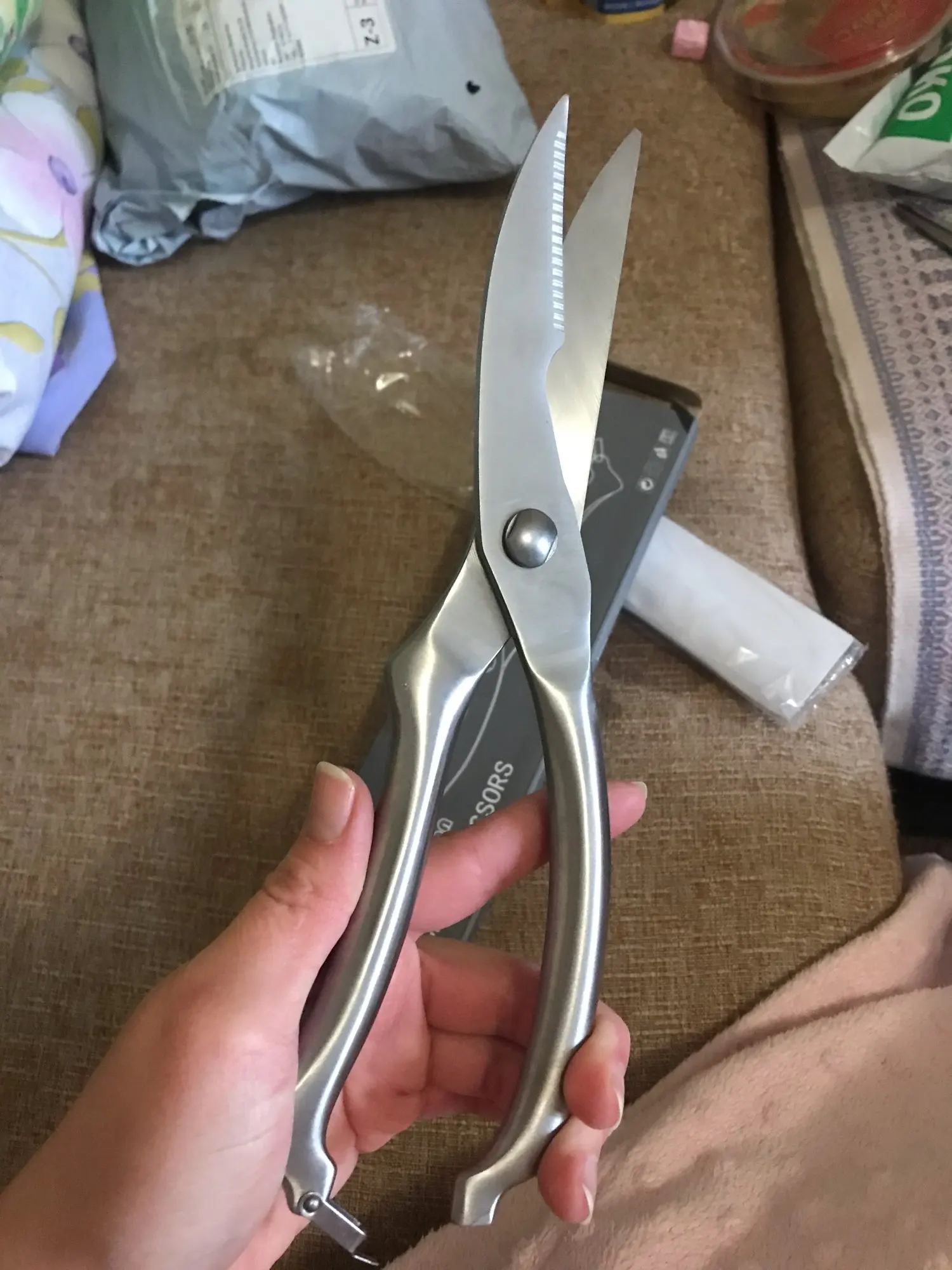 посылка очень долго шла. но всё таки пришла. коробка малость порвана. ножницы норм. можно брать