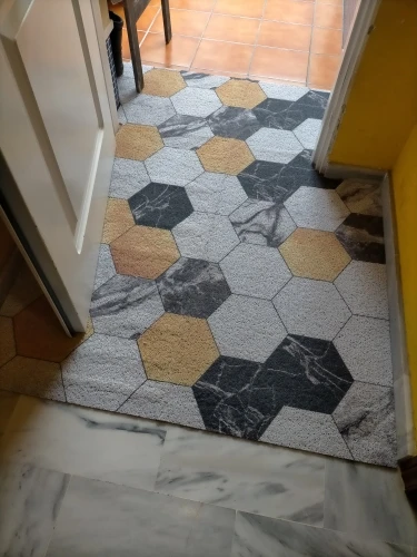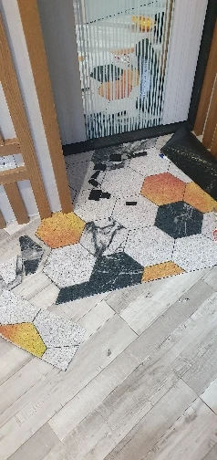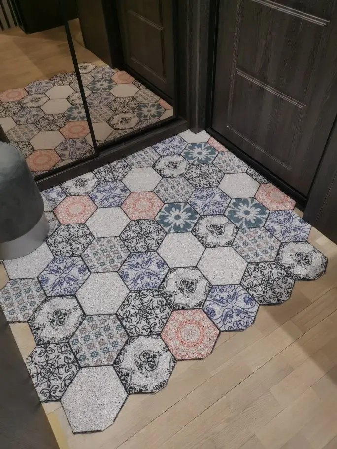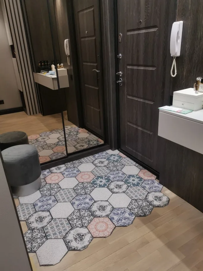 Пришел в свернутом виде, доставил к двери квартиры курьер DPD. Полностью распрямился , полежав один час. Запаха сильного или неприятного не почувствовала. Коврик такой действительно необходим, очень хорошо собирает песок в прихожей, стало заметно чище. Теперь о минусах - на одном пятиугольнике рисунок "залез" на соседний. И производителю нужно продумать нанесение рисунка - не все пятиугольники по краям коврика уместились полностью, с двух сторон получились ряды обрезанных пятиугольников. Не очень красиво, а если обрезать все неполные пятиугольники, то от коврика за 5 тысяч мало что останется.