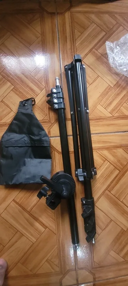 Соответствует описанию! Хорошая стойка за свои деньги. Крепление пластиковое, но не самое плохое. Тяжелый вес не потянет. Для небольшого софтбокса подойдет.