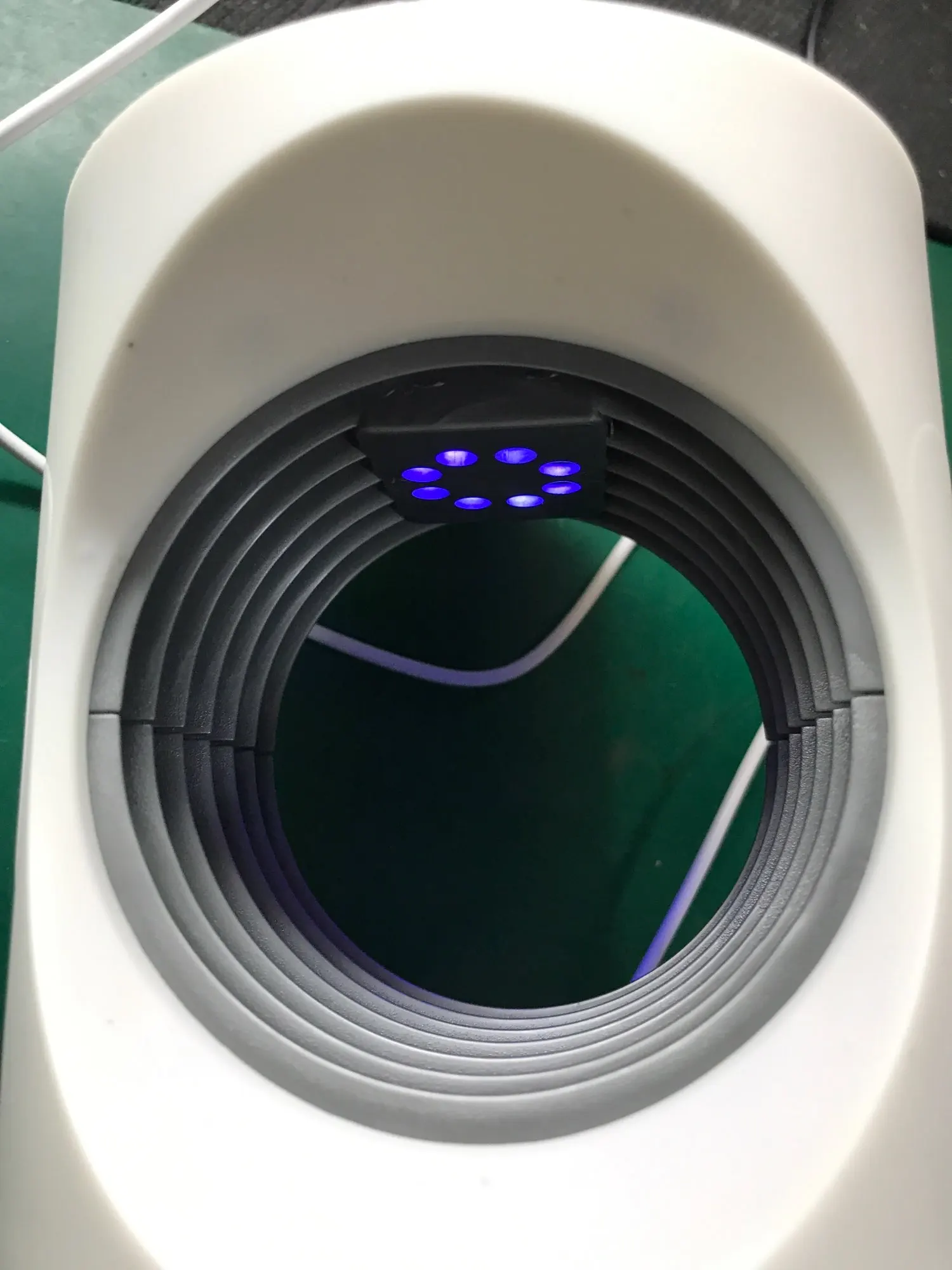Лампа отличная! доставка не долгая, упакованная в коробочку, пришла целая! Работает исправно, вентилятор крутиться. Эффективно работает в темноте, за пару часов поймала пару мелких мошек из комнатных цветов, они в темноте прилетели на завораживающий синенький свет лампы и их засосало вентилятором в контейнер.