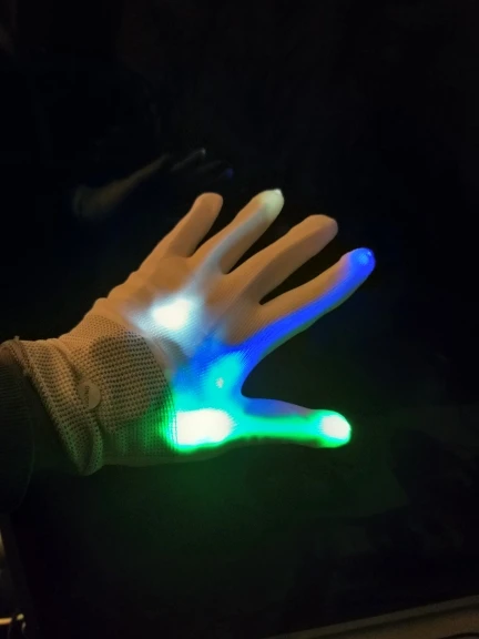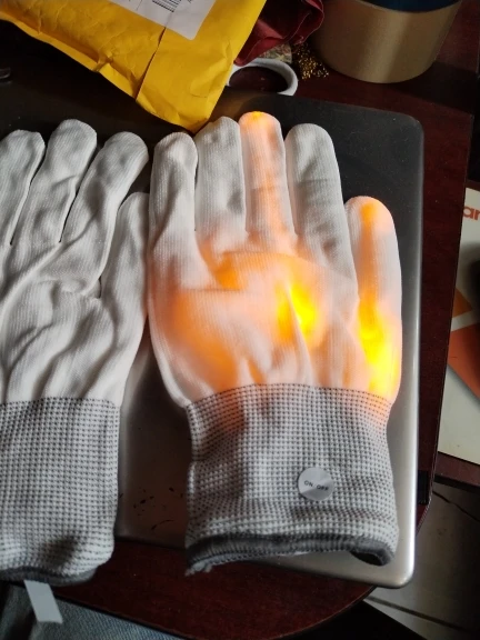 Классные перчатки!!! Доставка очень быстрая, спасибо за это продавцу!!!!! жалко что через неделю на одной из перчатке перестали светить 2 пальца.