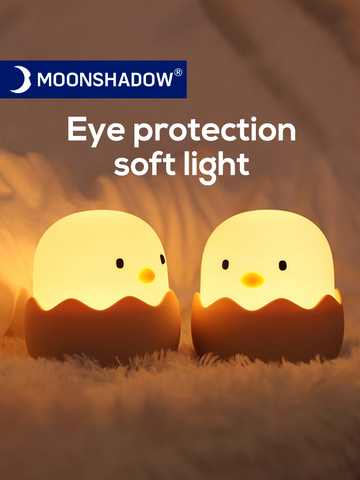 Светодиодный детский ночник из мягкого силикона, зарядка через USB, украшение для спальни, Подарочный ночник в виде цыпленка с животными, Сенсорная лампа MOONSHADOW