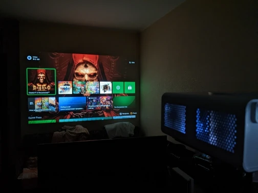 2й 1LCD проектор, 1й был T26K. Этот взял на время(Спасибо каналу Ониомания), пока не решусь на DLP или 3LCD. Для начала - спасибо продавцу! Товар дошел без царапин и отсутствии конденсата. + Картинка, с завода откалибрована. Цвета сочные, не "кислотные". Пропусков кадров не заметил. + Четкость. Режим точка-в-точку. Фокус не до конца выставил, на фото пример 4px шрифта! +/- Оптика. Длиннофокусный. Труднее настроить фокус. Идеальный прямоугольник! + Яркий. Расстояние 4м. На фото. Софтбокс 8w, люстра 3x8w + софтбокс, темнота. + Тихий, ночью не мешает просмотру. - keystone - бесполезен. 1LCD прихотливы к месту установки. Если вы здесь, то думаете нужен ли вам проектор или нет. После проектора телевизор - фонарик в глаза. Отличный мультимедиа проектор начального уровня. Можно смотреть кино, играть в игры даже днем, если у вас плотные шторы. ТВ-бок взял, ради ип-тв. Странная игрушка. Для не требовательных задач сгодиться, а как основной источник вывода картинки - нет.
