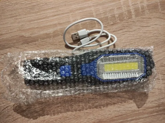 Хороший фонарь, всё работает. Четыре режима свечения (верхний, яркий, менее яркий, аварийный сигнал). Есть магнит и крючок. Зарядный кабель в комплекте. Доставка очень долгая - 3 месяца в Беларусь.