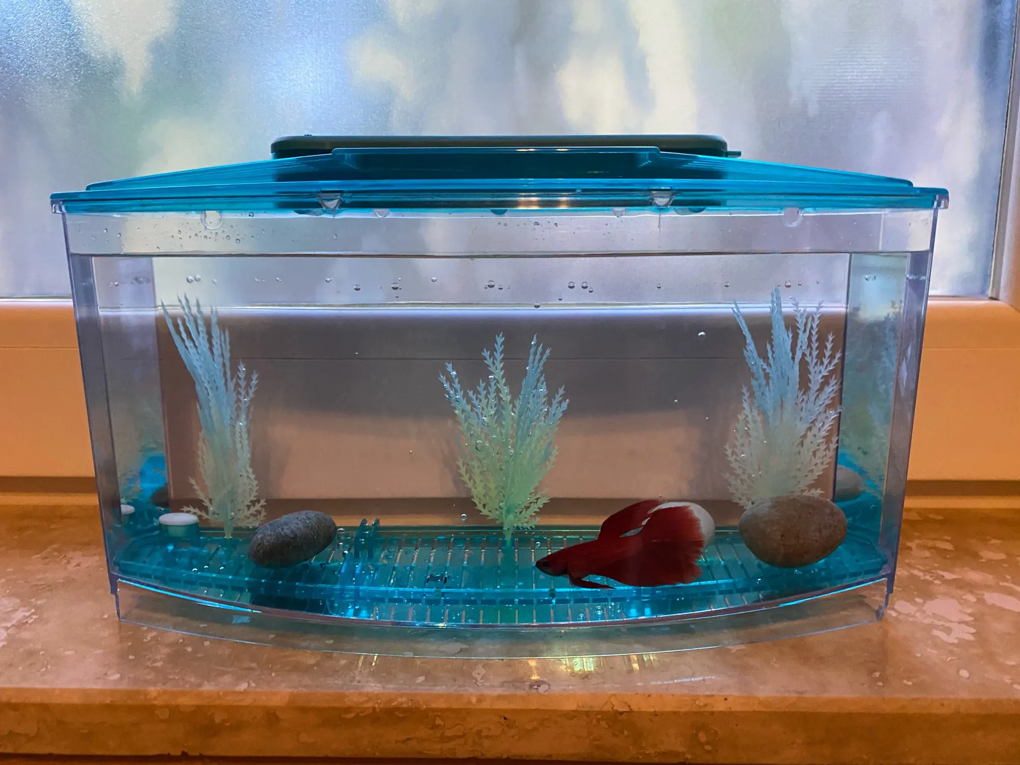 Очаровательный компактный аквариум. Точно, как в описании. Заказали "на пробу" на День рождения дочери 5ти лет. Просили продавца отправить максимально быстро, чтобы посылка успела к празднику. Продавец - умница - отправил стремительно. И доставка очень быстрая: с 9 по 27 октября. С продавцом общаться приятно - очень доброжелательный и старается максимально помочь и решить любые вопросы. К торжеству купим 1-2 неприхотливых рыбки и добавим фото аквариума в действии.